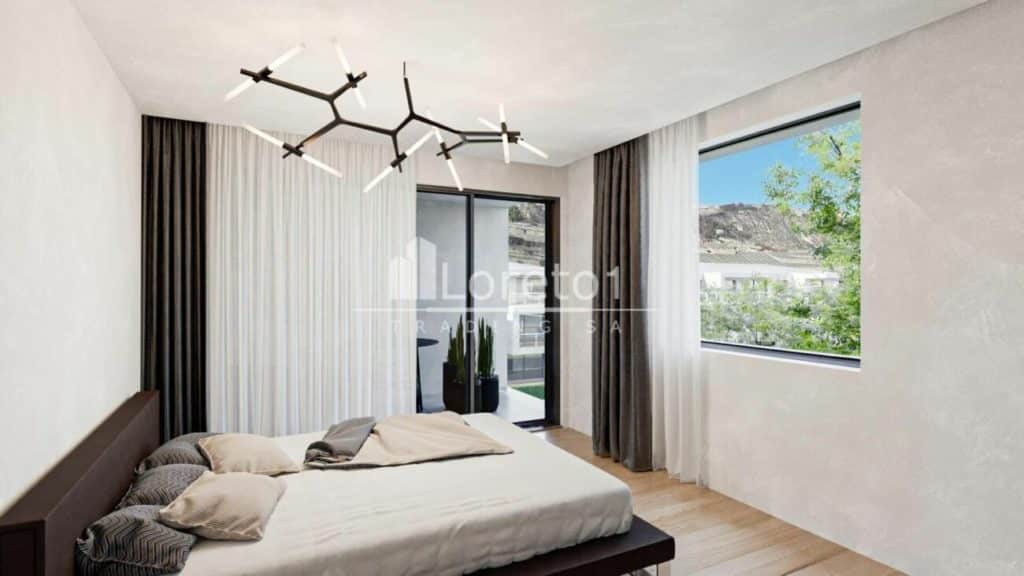 Tous les appartements bénéficient de terrasses spacieuses offrant une vue dégagée sur les montagnes environnantes.